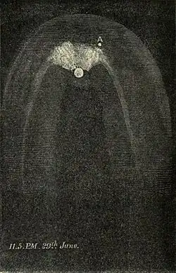 On June 25 the appearance of the comet was altered, the club-footed mass of light had disappeared, and the nucleus presented a rayed appearance.