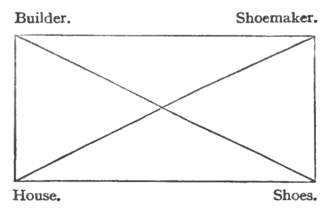 - ↑ The Shoemaker would get a house while the Builder only had (say) one pair of shoes, or at all events not so many as he ought to have. Thus the man producing the least valuable ware would get the most valuable, and vice versa.