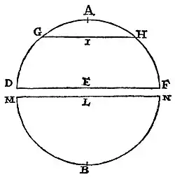 * merely so that they are always in the middle of the mass that is left between the plane of the arctick circle G I H and the antarctick pole B. Therefore the segment of the terrella comprised between the plane of the former æquinoctial (that, of course, which was the æquator before cutting that part away) D E F and the newly acquired æquator M L N will always be equal to the half of that part which was cut off, G I H A.