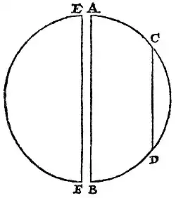But if the portions have been taken away from the side C D, the poles and axis will not be in the line A B, but in E F, and the axis would be changed in the same proportion as the æquator in the former figure. For those positions of forces and virtues, or rather limits of the virtues, which are derived from the whole form, are moved forward by change of quantity and shape; since all these limits arise from the conspiring together of the whole and of all the parts united; and the verticity or the pole is not a virtue innate in one part, or in some definite limit, or fixed in the substance; but it is an inclination of the virtue to that part. And just as a terrella separated from the earth has no longer the earth's poles and æquator, but individual ones of its own; so also if it again be divided, those limits and distinctions of the qualities and virtues pass on to other parts. But if a loadstone be divided in any way, either along a parallel, or meridionally, so that by the change of shape either the poles or the æquator move to other positions, if the part cut off be merely applied in its natural position and joined to the whole, even without any agglutination or cementing together, the determining points of the virtues return again to their former sites, as if no part of the body had been cut off. When a body is entire, its form remains entire; but when the body is lessened, a new whole is made, and there arises a new entirety, determined for every loadstone, however small, even for magnetick gravel, and for the finest sand.