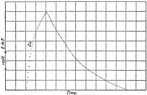 when the acted wire recovers from the strain. We may describe the same fact in chemical language by saying that owing to strain there is a tendency of the strained wire to become chemically more active (zinc-like), such tendency lasting only as long as it takes the wire to recover from the strained condition.