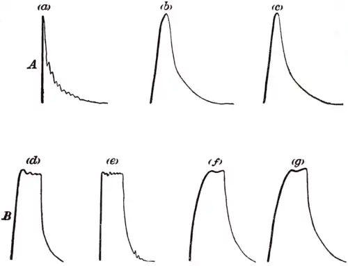 5. In the curve of response, in all the above cases, the ascending portion is abrupt, whereas the fall during recovery is at first rapid, then comparatively slow, the curve of recovery being thus convex to the abscissa.