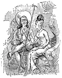 We reached Wimpfen,—I think it was Wimpfen,—in about three hours, and got out, not the least tired; found a good hotel and ordered beer and dinner,—then took a stroll through the venerable old village. It was very picturesque and tumble-down, and dirty and interesting. It had queer houses five hundred years old, in it and a military tower, 115 feet high, which had stood there more than ten centuries. I made a little sketch of it. I kept a copy, but gave the original to the Burgomaster. I think the original was better than the copy, because it had more windows in it and the grass stood up better and had a brisker look. There was none around the tower though; I composed the grass myself, from studies I made in a field by Heidelberg in Hämmerling's time. The man on top, looking at the view, is apparently too large, but I found he could not be made smaller, conveniently. I wanted him there, and I wanted him visible, so I thought out a way to manage it; I composed the picture from two points of view; the spectator is to observe the man from about where that flag is, and he must