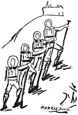 We crossed a boat and the ascent by a narrow, steep path which plunged us at once into the leafy deeps of the bushes. But they were not cool deeps by any means, for the sun's rays were weltering hot and there was little or no breeze to temper them. As we panted up the sharp ascent, we met brown, bareheaded and