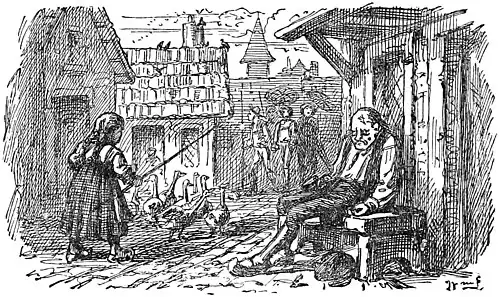 in a shop which I know he did not make so large a thing as a hogshead in, for there was not room. In the front rooms of dwellings girls and women were cooking or spinning, and ducks and chickens were waddling in and out, over the threshold, picking up chance crumbs and holding