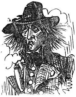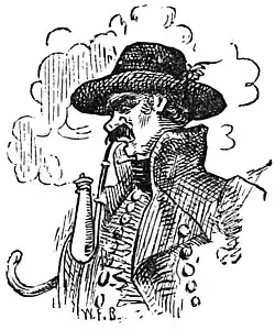 Wedding party assembled in old Huss's drawing room; Hoch placid and content, Gretchen weeping over her hard fate. Enter old Huss's head book-keeper. Huss says fiercely, "I gave you three weeks to find out why your books don't balance, and to prove that you are not a defaulter; the time is up,—find me the missing property or you go to prison as a thief." Book-keeper: "I have found it." "Where?" Book-keeper: sternly,—tragically: "In the bridegroom's pile!—behold the thief—see him blench and tremble!" [Sensation.] Paul Hoch: "Lost, lost!"—falls over the cow in a swoon and is handcuffed. Gretchen: "Saved!"