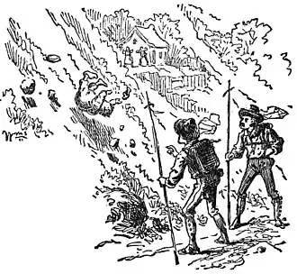 Just as we had finished talking about skeletons and were drifting into the subject of fossils, Harris and I heard a shout, and glanced up the steep hillside. We saw men and women standing away up there looking frightened, and there was a bulky object tumbling and floundering down the steep slope toward us.