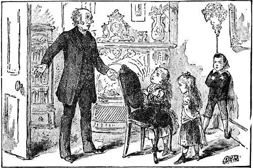 Next Sunday the preacher stepped softly to a back room door to see if the children were rightly employed. He peeped in. A chair occupied the middle of the room, and on the back of it hung Jimmy's cap; one of the little sisters took