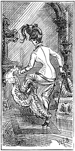 A trim young American lady paused a yard or two from me, fixed her eyes on the mellow sparks flecking the far-off altar, bent her head reverently a moment, then straightened up, kicked her train into the air with her heel, caught it deftly in her hand, and marched briskly out.