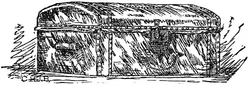 in the art of the Republic. The Trunk is bound or bordered with leather all around where the lid joins the main body. Many critics consider this leather too cold in tone; but I consider this its highest merit, since it was evidently made so to emphasize by contrast the impassioned fervor of the hasp. The high lights in this part of the work are cleverly managed, the motif admirably subordinated to the ground tints, and the technique is very fine. The brass nail-heads are in the purest style of the early renaissance. The strokes, here, are very firm and bold—every nail-head is a portrait. The handle on the end of the Trunk has evidently been retouched—I think, with a piece of chalk—but one can still see the inspiration of the Old Master in the tranquil, almost too tranquil, hang of it. The hair of this Trunk is real hair—