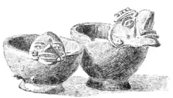 similar to those here figured, strewn on the floor and clustered around the stone figure. Many of these pots contained half-burnt copal, and from the positions in which we found them it is evident that they must have been placed in the house within recent years, probably by the Lacandones, who still, I am told, hold the place in reverence. In this house, and in most of the other buildings still standing, stone lintels span the doorways, many of them elaborately carved on the underside.
