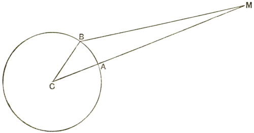 Ptolemy obtained the two directions required by means of observations of the moon, and hence found that c m was 59 times c b, or that the distance of the moon was equal to 59 times the radius of the earth. He then uses Hipparchus's eclipse method to deduce the distance of the sun from that of the moon thus ascertained, and finds the distance of the sun to be 1,210 times the radius of the earth. This number, which is substantially the same as that obtained by Hipparchus (§ 41), is, however, only