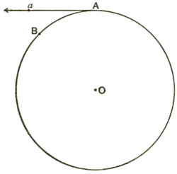 Let a represent the position at a certain instant of a body which is revolving with uniform speed in a circle of centre o. Then at this instant the body is moving in the direction of the tangent a a to the circle. Consequently by Galilei's First Law (chapter vi., §§ 130, 133), if left to Itself and uninfluenced by any other body, it would continue to move with the same speed and in the same direction, i.e. along the line a a, and consequently would be found after some time at such a point as a. But actually it is found to be at b on the circle. Hence some influence must have been at work to bring it to b instead of to a. But b is nearer to the centre of the circle than a is; hence some influence must be at work tending