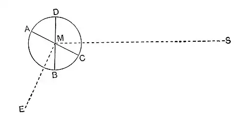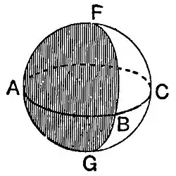 phases are those which would be assumed by a spherical body of which one half only is illuminated by the sun. Thus the visible portion of the moon is bounded by two planes passing nearly through its centre, perpendicular respectively to the lines joining the centre of the moon to those of the sun and earth. In the accompanying diagram, which represents a section through the centres of the sun