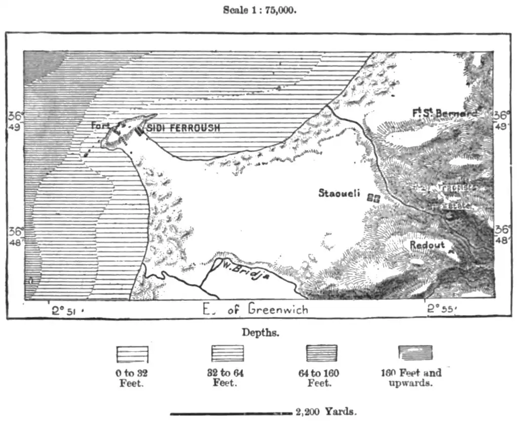 military lines, forming a zone of over 370 acres, which hem it in on all sides, As a military stronghold, Algiers has lost most of its importance under the altered conditions of modern warfare. The proper site of forts intended to defend the city is clearly indicated by the crests of the hills on the coast. There is further need of an abundant supply of good water; the streets also require to be properly paved in order to abate the dust nuisance, and the drainage works should forthwith be completed, in order to get rid of a still more offensive and dangerous nuisance.