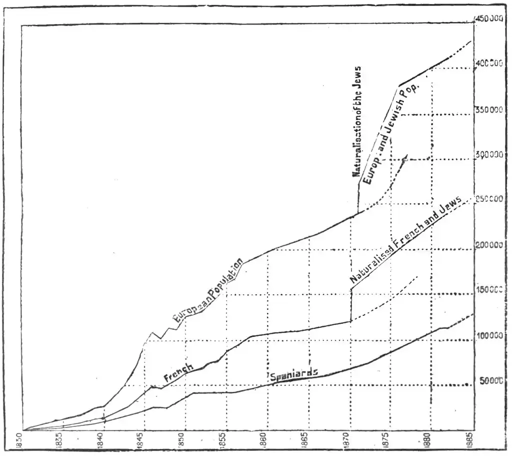 In the European colony the French have a numerical superiority over all others since the year 1851, although the difference is slight, regard being had to