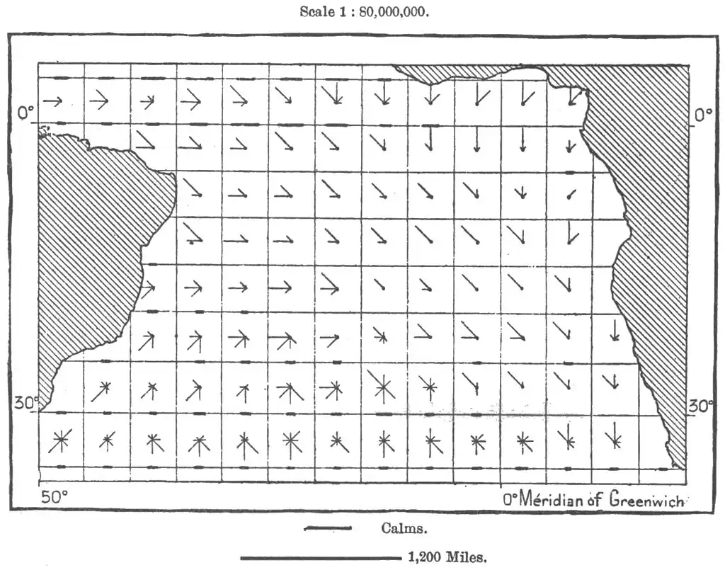 The cause of this movement from west to east in the same direction as that of the globe itself, is a question that cannot be discussed apart or independently of the still unsolved general problem of the circulation of the oceanic waters. The part played in these movements by the rotation of the globe, by the winds, the varying temperature from the surface downwards, the varying degrees of salinity