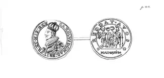 HEREWITH I send you a drawing, which exhibits a gold medal struck by king Charles I. upon the birth of the prince his son, afterwards king Charles II. Upon the obverse it gives the bust of king Charles I. representing that monarch crowned, with a ruff, and a military scarf over his armour. It is inscribed carolvs d. g. mag. brit. fra. et hib. rex. The reverse