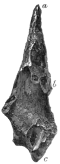 b, c Portion not artificially shaped. b, a Part chipped into shape, and having a cutting edge at a.