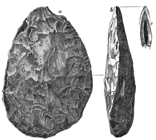 Fig. 10. Flint tool from St. Acheul, seen edgewise; original, six and a half inches long, and three inches wide.