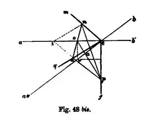 Let the dark lines , be the level top of the adjacent walls (Fig. 48 bis), the quoin, the solid angle at top, , , , the points of fracture in those lines.