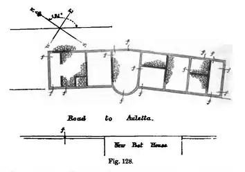 walls partly or wholly fallen; and the places of the principal measurable fissures are marked , &c. The fissures of the S. E. end when reduced, give 76° W. of N. for the wave-path, those at the opposite end 73° W. of N. the