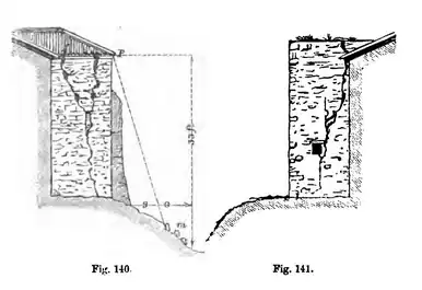 Some roof-tiles have been thrown from the cave at the west end, from (Fig. 140), and are lying at , from 7 to 9 feet horizontally from the base of the wall, having fallen vertically 33 feet.