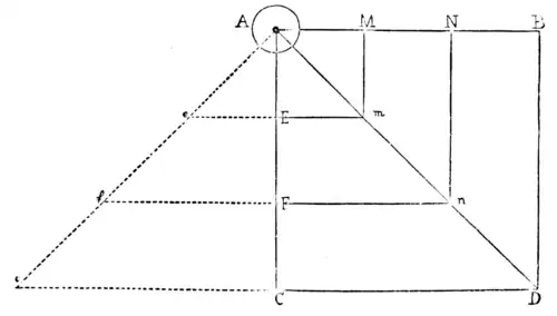 On the other hand, let the motion be conceived as in absolute space, and instead of the motion in the same absolute space, let the contrary motion of the relative space [be conceived] with the same velocity, which (according to axiom 1) is equal to the motion , and may thus be entirely substituted for it; in this case two exactly opposite and equal motions of the same point, at the same time, may be very well presented. Now, as the relative space is moved with the same velocity in the same direction with the point , this point, or the body, present therein, does not change its place in respect of the relative space; i.e., a body moved in two exactly contrary directions with equal velocity, rests, or generally expressed, its motion is equal to the difference of the velocities in the direction of the greater (which admits of being easily deduced from what has already been demonstrated).