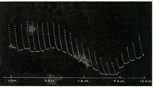 Fig. 29. Diurnal variation of excitability exhibited by summer specimen.