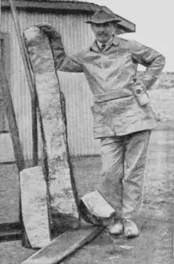 The six hundred pound slab shown assays about ten thousand ounces of silver per ton, being therefore about one-third pure silver. There is no gold in the ore, that being one of the general peculiarities of the ores of the Cobalt district.