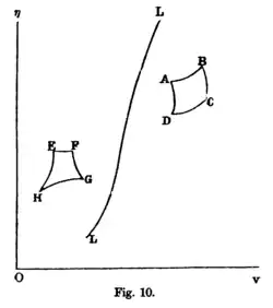 Let us suppose that on the right of the line (fig. 10) in a volume-entropy diagram, is positive, and on the left negative. Then, if we draw any circuit on the right side of , the direction