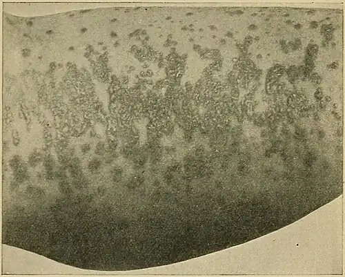 roughened and pigmented, and present an appearance quite unlike the eruption seen upon the trunk and forearms.