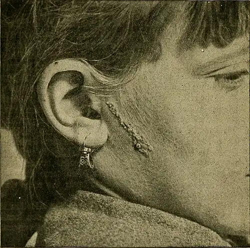 The term nævus verrucosus would be applicable to this affection, but the fact that this name is commonly applied to the soft, flattened, pigmented, warty outgrowths so frequently seen upon the backs of old men and women renders its use objectionable in case of the disease under consideration. Nævus unius lateris is descriptive of most cases of this affection, but the fact that it may occur on both sides in certain cases may cause the name to sound absurd at times.