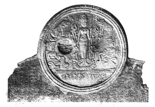 Copper Seal of a Kumaramatya of the Gupta Empire, used by a Samanta in the 8th Century A. D. Collection of the Asiatic Society of Bengal.