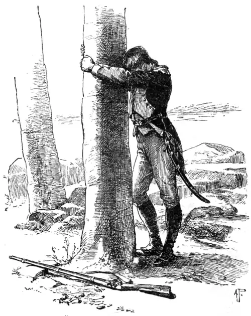 A thousand troubled thoughts passed through the mind of the panther's prisoner. At first he thought of shooting it; but here was not enough room between them to adjust his gun; the barrel would have reached beyond the animal. And what if he awoke it! This supposition made him motionless. Listening in the silence to the beating of his heart, he cursed the loud