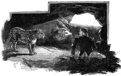 When the sun shone out, the panther opened her eyes suddenly; then she spread out her paws forcibly, as if to stretch them and get rid of cramp. Then she yawned, showing an alarming set of teeth and an indented, rasp-like tongue. "She is like a dainty lady!" thought the Frenchman,