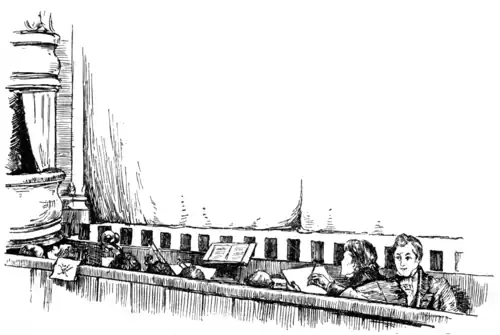 she was innocently sitting for her picture to Parris and Mr. Graves, who were cornered in the orchestra. Parris afterwards shut himself up in his studio, and never left it until he had finished his work. The price agreed upon was doubled, and the Queen signified her approval of the tact employed by purchasing a considerable number of the engravings. The reproduction of the picture in these pages becomes the more interesting from the fact that it is done by permission of the still living occupant of one of the two orchestra seats—Mr. Henry Graves.