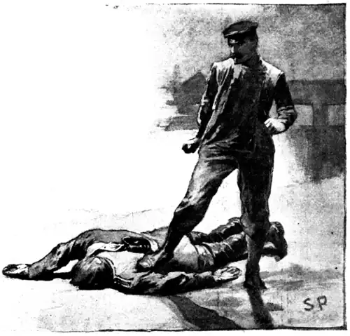 "When I again reached Villeneuve, night was approaching. I kept my eyes open, you may depend, and advanced foot by foot. The place seemed quiet enough, however. I could discern the hut still standing yonder in the mist. There was a long black line, or row, upon the quay. This 'palisade' was composed of Prussians calling the roll. A splendid opportunity to find the house deserted. As I made my way along I noticed Father Jaquot engaged in drying his nets. Decidedly nothing was known yet. I entered my house, I went down into the basement and felt about among the shavings. The Prussian was there! There were also a couple of rats already busy at work at his helmet, and, for a moment, I had a horrible fright, when I felt his chinstrap move! Was he reviving? No; his head was heavy and cold.