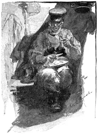 "This is sweet meat to Peter," said one of the seven, pointing to the pork, "and a pound a month is good money to Peter; and if Peter and the likes of him could get their way, then if ye wanted to see what sort of man an English sailor looked like ye'd have to ask the master of the fust workhus as hove in sight to show him."