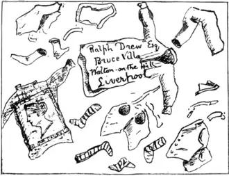 The positions occupied by the postage. stamps are many. Often a gentleman is sitting on it, other times carrying it on his back, but the favourite place seems to be as the sign of an inn—"The Queen's Head." One of such hostelries shows a person leaving the house in anything but a fit and proper state, over whose head may be seen the concluding portion of the familiar sign of many a country publichouse—"licensed to be drunk on the premises." An exceedingly original drawing is that of a corkscrew with a merry expression about it, in the shape of a young man proceeding to draw the cork of a bottle in the form of a young lady, and drinking up the contents. This was addressed to a