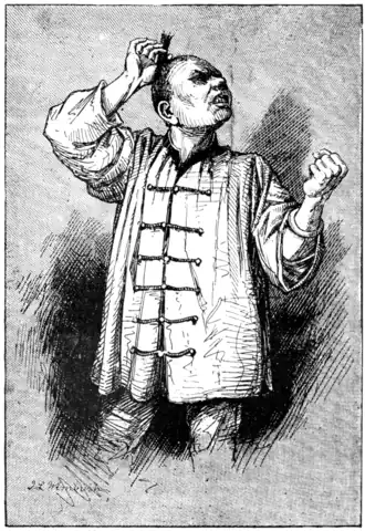 The proprietor of the den which I visited was a Chinaman named Chang, who positively grinned me over from head to foot—not only when I was first made known to him by the friend who had piloted me to the establishment, but as long as I remained within grinning range. An uninformed onlooker might not unnaturally have concluded that I was stone-deaf and dumb, and that our host was endeavouring to express, by his features, the cordiality he was unable to convey in words. In reply o every casual remark made by my companion, the Chinaman would glance up for a moment at his face, and then turn round to grimace again at me, as though I, and I only, were the subject of their conversation, and he was half afraid I might think he did not take a becoming interest in it. In the few words which I exchanged with him, I found him exceedingly civil, and he