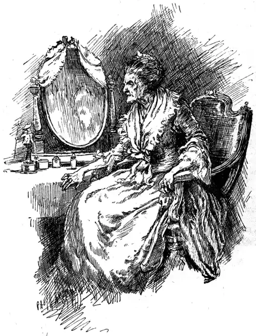 "SEATED BEFORE HER LOOKING-GLASS."