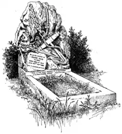 At Kensal Green a sword and pen crossed, carved on a block of white marble, which is inscribed with a characteristic quotation from one of his earliest works, appropriately indicates the grave of "The Boys' Novelist."