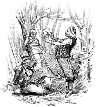 Having formed a hanging committee, they disposed of a batch of these drawings on the surrounding forest trees. A sylvan exhibition of black and white sketches, to "a private view" of which they now left our scared servant.