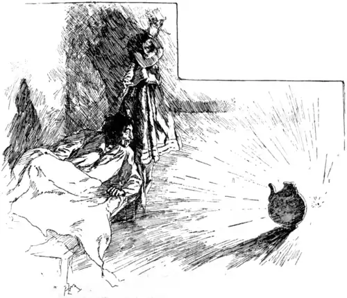 The guest, being tired, was soon fast asleep. Towards morning he awoke, and was surprised to see the chamber bathed in a resplendent light. Knowing well that the people of the house could not afford a lamp or candles, he arose to find out whence proceeded this unusual brilliancy. Great was his astonishment to find that it proceeded from a small stone in the corner of the room, which, as the sun struck on it, sent out rays of vivid light. He took up the stone, and, believing it to be of great value, took it to the Ambassador.