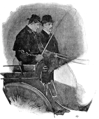 "Now, Watson," said Holmes, as a tall dog-cart dashed up through the gloom, throwing- out two golden tunnels of yellow light from its side lanterns. "You'll come with me, won't you?"
