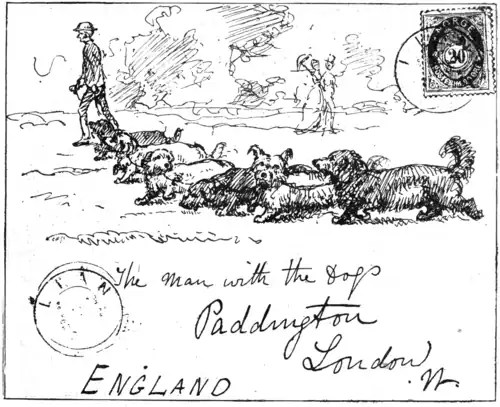 A Norwegian artist, during his stay in London, was one morning passing through Hyde Park, when his attention was attracted by a spectacle with which many Londoners are perfectly familiar—Mr. J. Pratt, the well-known dog-fancier, taking his string of Skye terriers abroad for air and exercise. The artist, after his return to Norway, called the scene to mind, and was anxious to acquire a specimen of the breed. He knew neither the owner's name or address, but, with an implicit trust in the ingenuity of the Post Office, which the result thoroughly justified, he took up his pen and despatched a letter in an envelope, of which the above is a reproduction in fac-simile. The letter was delivered in due course to Mr. J. Pratt, Gloucester-terrace, Hyde Park. The contents of the letter were as follows:—