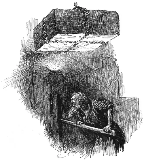 Seized with a sudden despair, he fell down on the ground, and lay almost in a faint, gazing with a horrid stare at the great weight above. The register had reached the mark, the moment had come, when, with a spring, the Jew hurled himself on the wooden arm, and, with redoubled strength, again filled the bellows with air. Then the triumphal chant changed to the soft tones of the Nunc dimittis; the leaden register moved but slowly up the wall, and Reichenberg knew his task was almost ended. But the lever seemed to have grown heavier, he could hardly move it; he could not, his arm was weaker than a child's, and he sank back on the ground. With his eye fixed on the register he saw it mount slowly up to the mark, while the sweet chords rose and fell outside in the chapel. It had almost reached the top. He strove to rise, fell back, and the notes of the last chord ended in a despairing shriek, drowned by the fall of a heavy mass.