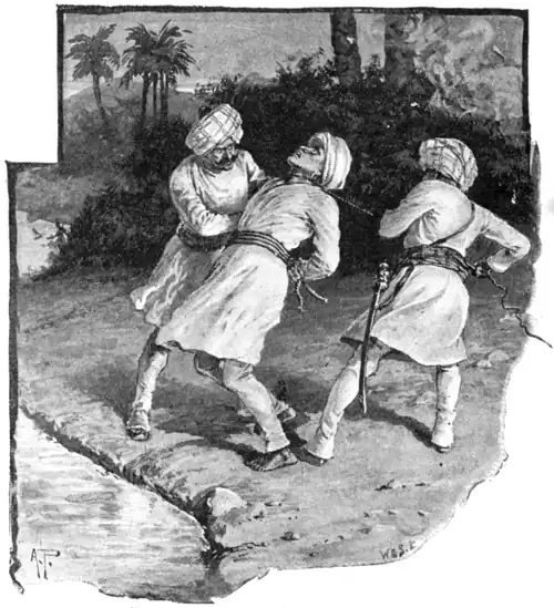 Before the youth could make any reply, a silken cord was dextrously twisted round his neck, and he was quickly strangled to death. Then the cords that bound him were cut, and his body was tossed into the rapidly flowing stream and quickly disappeared from sight.