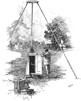 changes taking place in the solar surface. The labours of the Observatory in connection with the sun have been so persistent that photographs taken by the large telescope in the dome of the Observatory exist from 1859 to quite recently. Placed on the roofs so that they may catch any ray of sunshine there may be, are two sunshine recorders. One is a bowl of wood, over which is placed a spherical glass three or four inches in diameter; the other is a brass bowl, inside which is a specially prepared piece of blue cardboard. When the sun shines on the first it burns the wood away, and as the bowl remains there for six months, the amount of wood charred shows what "bright Phœbus" has been doing to gladden this earth of ours during that time; the second records his appearance through one day only. When the sun shines it burns a line on the cardboard, and his disappearance for any length of time is notified by the absence of the charred line. The notion here turned to scientific account is precisely that of the smoker whose matches have failed him. If the sun be shining he takes a spectacle glass, and holding it between the sun and his pipe, secures a light.